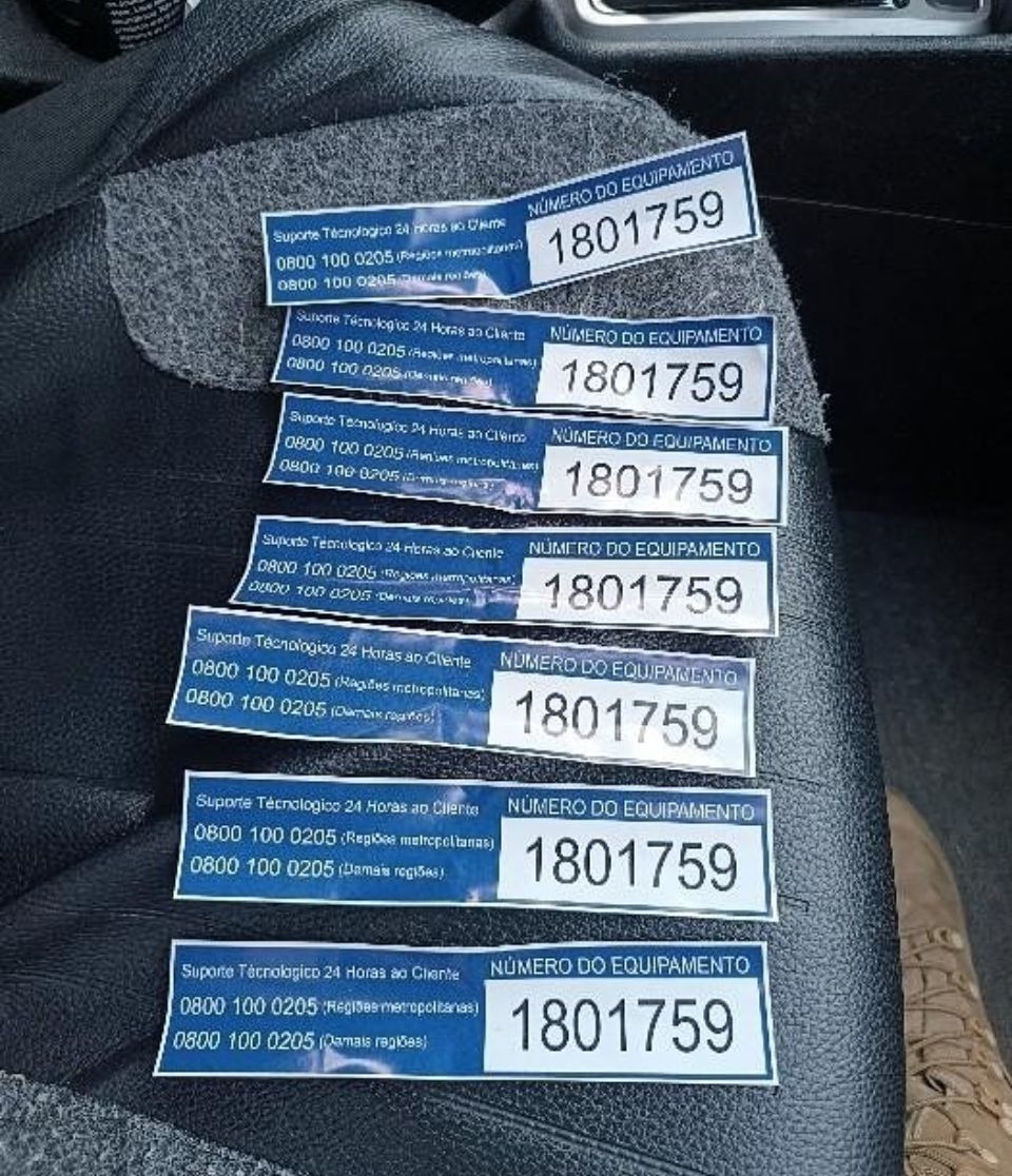 Durante as buscas, o veículo suspeito foi localizado na Rodovia Senador Luiz Henrique da Silveira (BR-280). Dentro do carro estavam um homem e uma mulher, ambos detidos após a abordagem. Durante revista pessoal feita por uma policial feminina, foram encontrados sete adesivos falsos do 0800 escondidos na região dos seios da mulher — idênticos aos colados nos terminais da agência. No interior do veículo, os policiais também apreenderam um dispositivo de retenção de cartão, compatível com o usado no golpe.