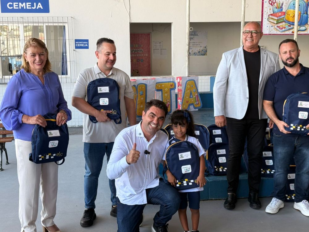 A Secretaria de Educação de Itapema iniciou nesta terça-feira (10/02) a entrega das mochilas literárias do Projeto Ler & Reler na rede municipal de ensino. A primeira unidade contemplada foi a Escola Bento Elói, em ação que contou com a presença do prefeito Alexandre Xepa, do secretário de Educação Valdir Nesi Filho, além de autoridades municipais e representantes da Elo Editora.