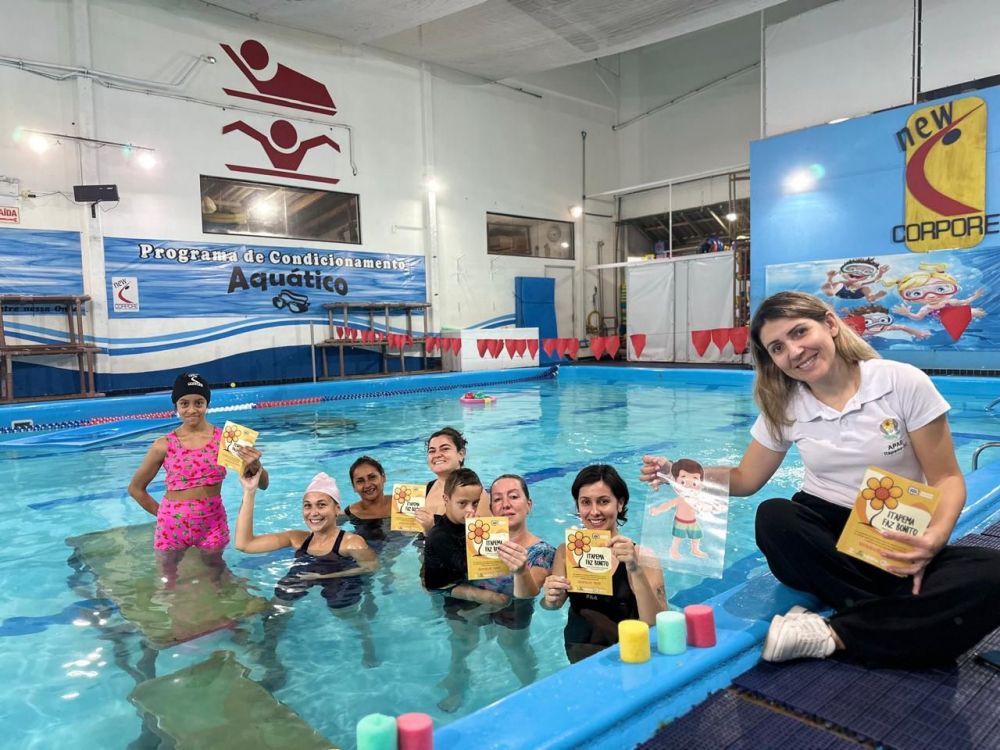 As atividades são conduzidas pelas fisioterapeutas Jeannie Vollmann e Luana Duarte, com acompanhamento da assistente social da instituição, Dandariana Westphal. A hidroterapia em grupo estimula o desenvolvimento motor, social e emocional, além de fortalecer vínculos familiares.