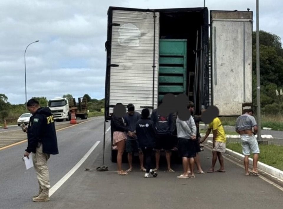 PRF descobre transporte irregular de trabalhadores no baú de caminhão