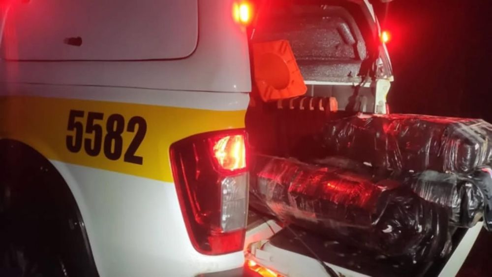 Durante a vistoria no automóvel, os policiais localizaram cerca de 130 quilos de maconha distribuídos em quatro fardos no interior do carro.